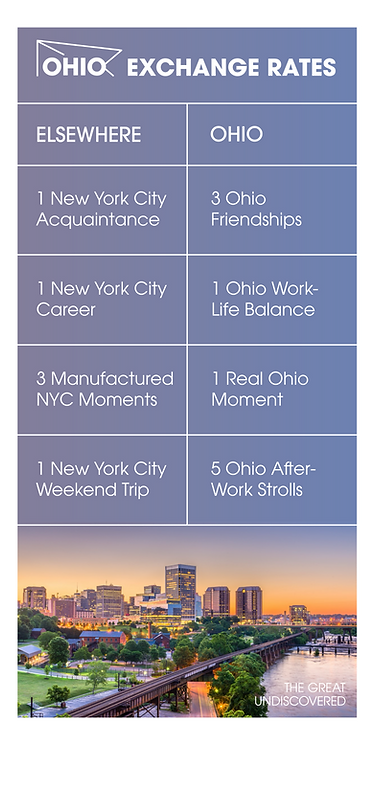 Ohio’s value is more than just its beautiful features and great opportunities. It’s the state’s way of life, the intangible experiences that make life richer in ways that are felt more significantly than just in your wallet. Exchange an experience in your city, and receive the same experience with more value in Ohio.